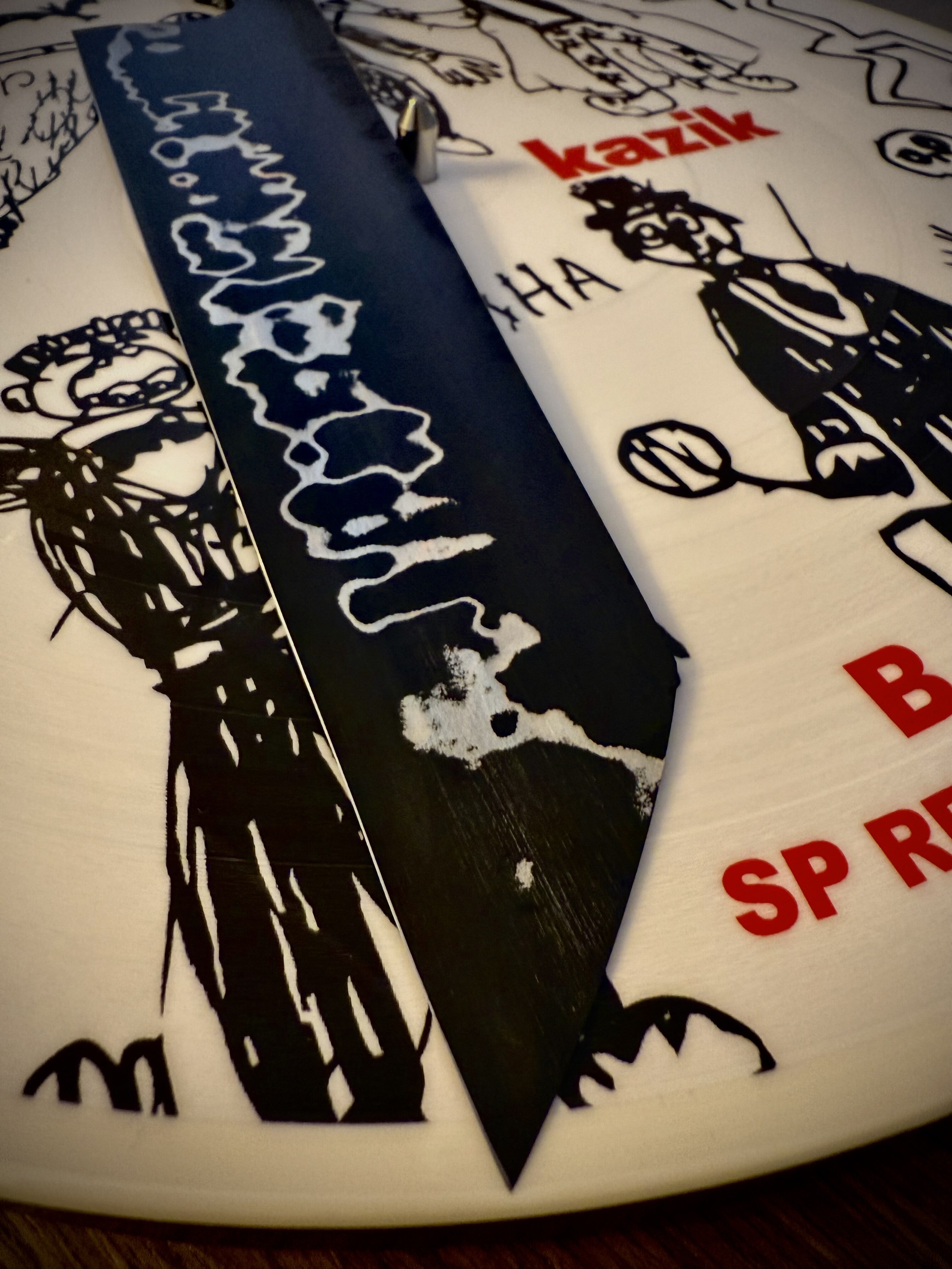 in the heel and a razor in the tip.