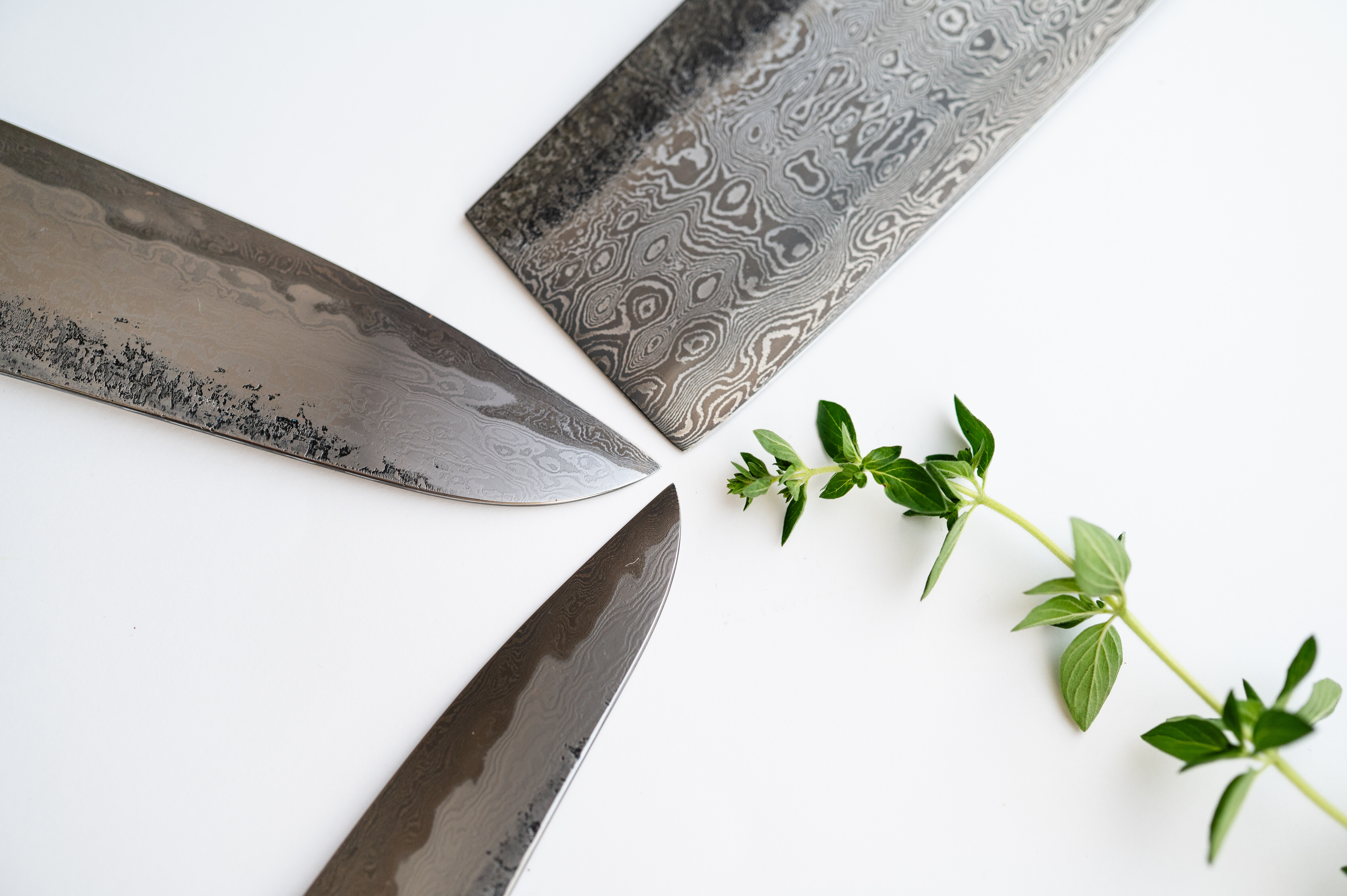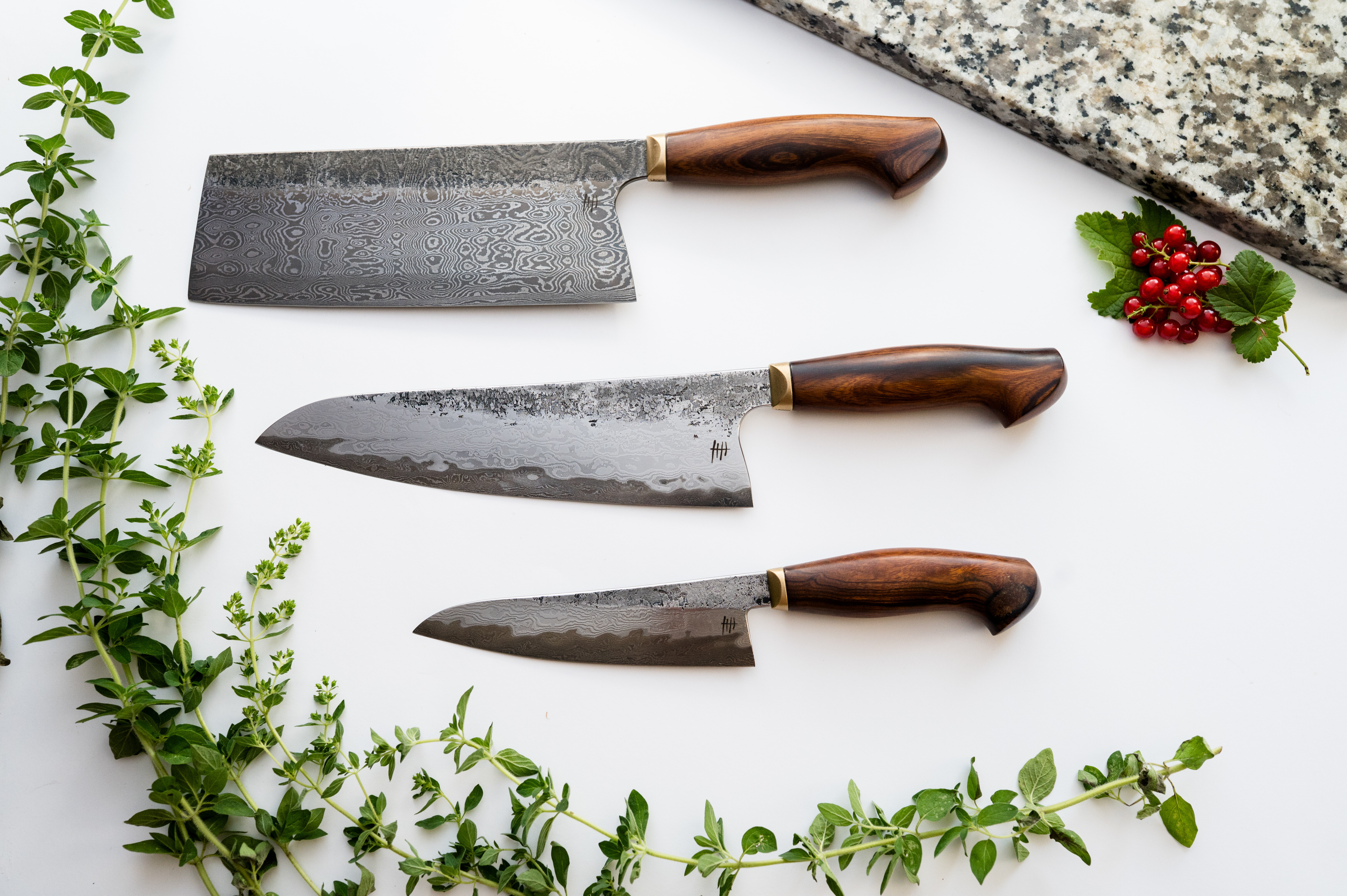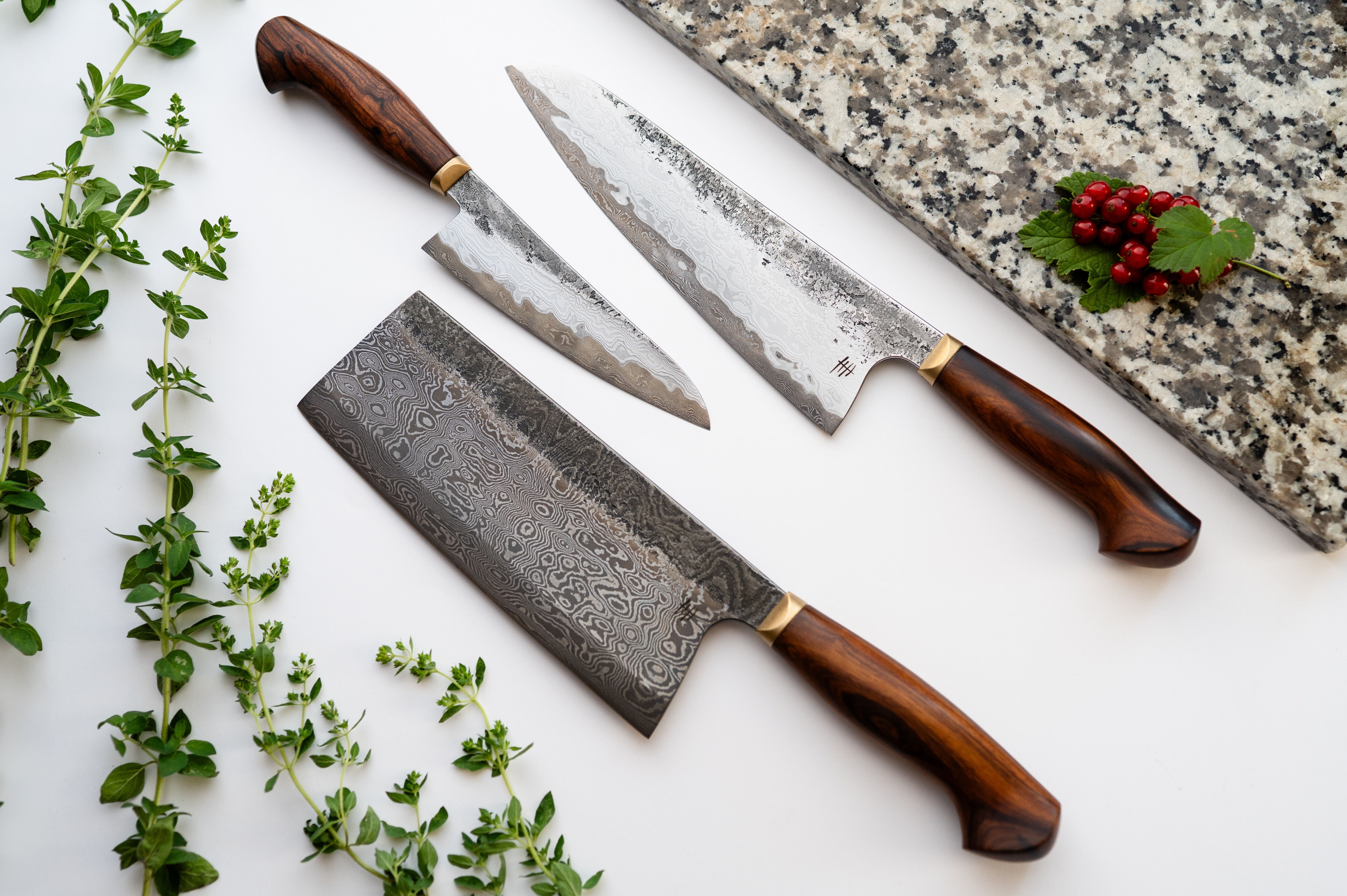 Wykułem ten zestaw od podstaw, aby osiągnąć jak najlepszą krawędź tnącą połączoną z elegancją damastu skuwanego. Do stworzenia tego zestawu użyłem stale @apexultrasteel z 15n20, które razem (dzięki zróżnicowanej twardości i właściwościom) zwiększają agresję cięcia.